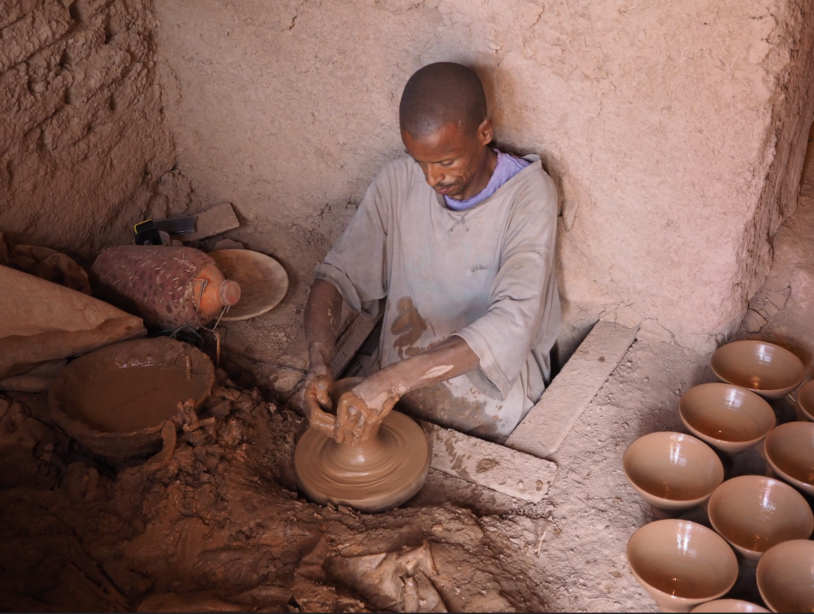 After breakfast, a dusty off road will take you to local prehistoric rock engravings in Foum chenna before you continue your way to Zagora to discover the nearby village of Amezrou and its Jewish heritage, the old adobe synagogue and the silver jewelry craft. Further, on the stoves of Tamegroute cast the emerald glaze so easily identified on mosque tiles, dishes and pots across Morocco.