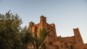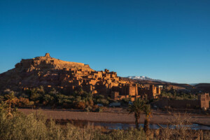 Descend into the Ounila Valley, once an ancient caravan route, now lined with fig and almond trees and dotted with kasbah ruins. Visit Ait Ben Haddou, a UNESCO World Heritage site famous for its striking earthen architecture and as a backdrop for films like Gladiator and Game of Thrones. End your day in Ouarzazate, the “Gateway to the Desert,” staying in a traditional guesthouse that reflects sustainable tourism in Morocco.