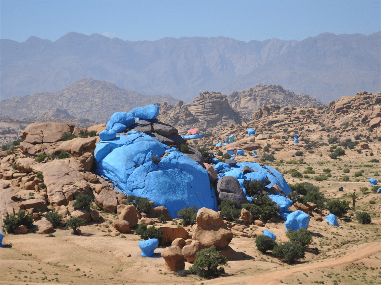 After breakfast, your driver will pick you up from your accommodation for a full day trip to the painted rocks of Tafraoute and the gorges of Ait Mansour. From here we are going to start our day trip from the Painted Rocks that stands as a natural desert landscape with an artistic touch. Giant granite boulders were painted bright blue in 1987 by Belgian artist Jean Verame as a tribute to his late wife, and the bright hues are still visible today.