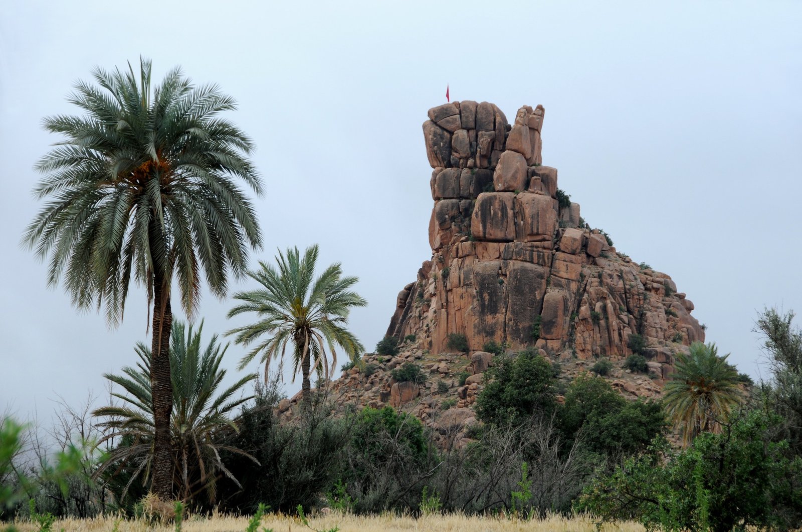 Then hite the road through Ait Mansour gorges southeast of Tafraoute, a breathtaking geological ensemble. The Aït Mansour Gorges, 30 km south-east of Tafraout, winds discreetly inside the ancestral mountain range of the Anti-Atlas, between the rocky and arid slopes, proudly stands one of the most beautiful palm groves in the south which offers an Extraordinary Panorama. picturesque climbing villages glued to the cliffs, the Oasis is in permanent greenery, the water is abundant, Almond trees, Palm trees, Olive trees… lunch will be here in a local restaurant with a panoramic view before heading back to Tafraoute for your second overnight at your accommodation.